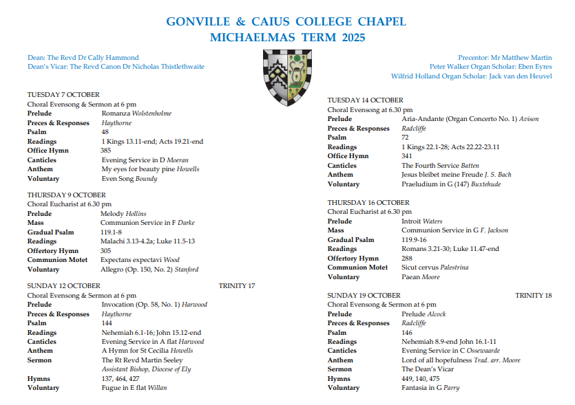 For details of the music to be sung at upcoming services, please click on the link below.